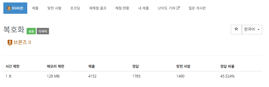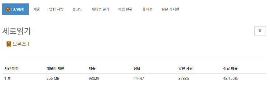 https://www.acmicpc.net/problem/10798제출 코드#include #include using namespace std;int main(){ char words[5][15] = {}; for (int i = 0; i > word; for (int j = 0; j 배열을 만들어두고 전체 문자열을 받아둔 다음에 차례로 출력하였다 추가#include #include using namespace std;int main(){ char words[5][15] = {}; for (int i = 0; i > words[i]; } for (int i = 0; i 처음에 풀었던 것처럼 입력받을 때 for문을 굳이 두 번 돌지 않고도 위와 같은 식으로 코드..
